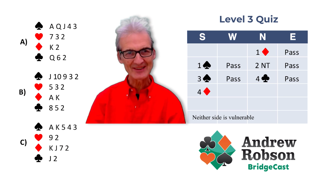 BridgeCast covers all levels from complete beginner through to experienced club player. We also offer a Strong No Trump and 5 Card Majors channel (aimed at Level 3-4 players).